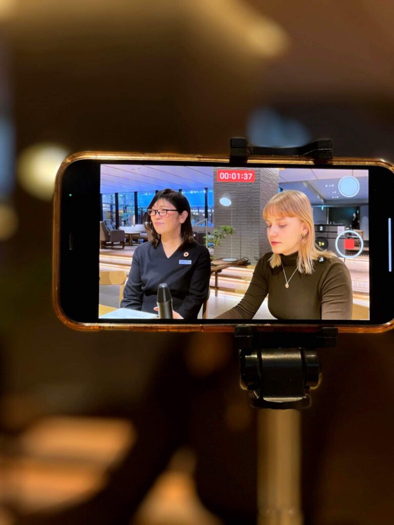 W przedostatni dzień znów dołączył do nas Naota z Meeting15 – miałam za sobą wywiad z Michaelem, tym razem przeprowadziłam go z Naota. Potem zwiedziliśmy trochę miasta, odwiedziliśmy Tokyo Skytree – idealnie o 16, gdzie załapaliśmy się na zachód słońca i podziwialiśmy Tokio dniem i nocą z 450 metrów wysokości. Udało mi się ponownie wyłapać Fuji 🙂 Kolejno pobawiliśmy się w kociej kawiarni a na koniec odwiedziliśmy tradycyjny Japoński bar. Przez cały wyjazd oczywiście próbowaliśmy nowości oraz tradycyjnych dań takich jak sushi, ramen, takoyaki A NAWET mieliśmy okazję spróbować rekina!